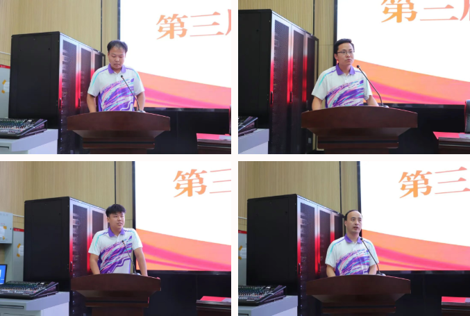 参赛学生代表任庆立、参赛教师代表宁国平、指导教师代表冯朋飞、裁判员代表胡绪志依次登台表态发言,分别表达了对本次赛事的坚定决心。